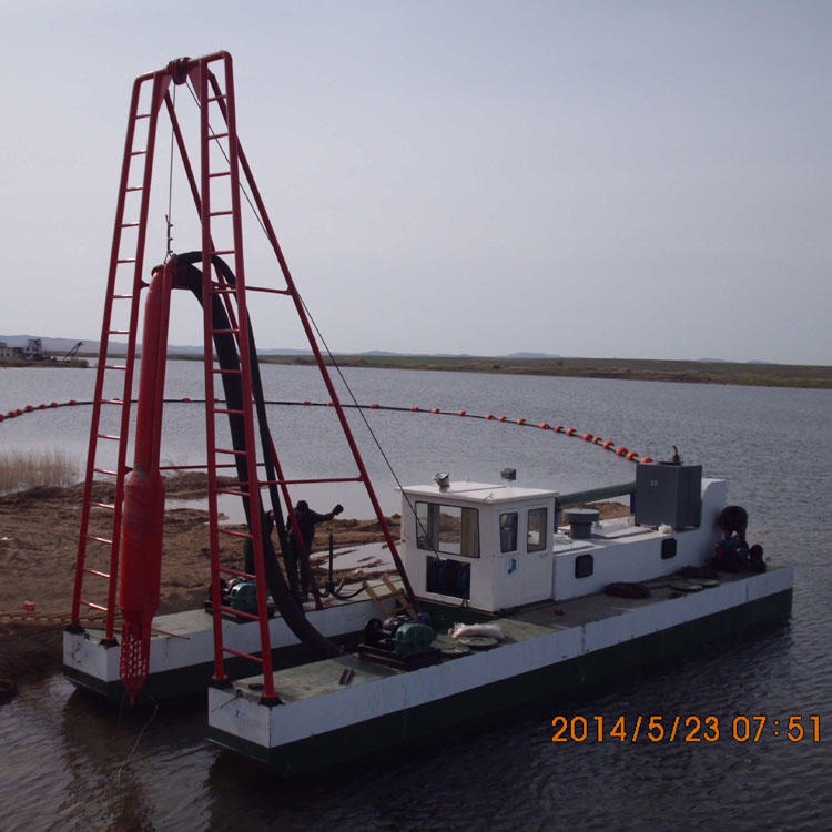 射流式抽沙船又名真空吸,虹吸式抽沙船。強(qiáng)大的柴油機(jī)動(dòng)力帶動(dòng)高揚(yáng)程真空泵射水,在水流轉(zhuǎn)彎的地方設(shè)計(jì)吸沙口,水回流的時(shí)候?qū)⑸匙訌牟逶谏硨拥奈軒蟻怼? 優(yōu)點(diǎn):此設(shè)備沙子不經(jīng)過泵,對(duì)泵沒有磨損,特別適合石頭多,深度大的地方。